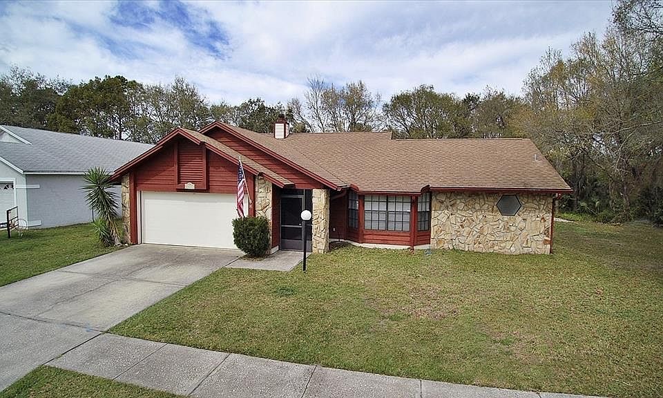 Welcome to your own secluded oasis with PRIVATE CONSERVATION VIEWS, LARGE INGROUND POOL & SPA, located in the middle of the best that New Tampa has to offer! Close to the finest shopping in the area... the Wiregrass Mall. Grocery stores, specialty shops, fine and casual dining, and the new LA Fitness are just a short distance away. A-rated schools are nearby, and the home is convenient to I-75, downtown Tampa, and the Tampa Airport. Enter through the front screened porch, you will notice the beautiful 20" porcelain tiled floors, neutral colors, large living room with oversized bay windows and dining area with sliders that lead to the porch. The kitchen has lots of cabinet space for storage and all appliances are included. Love the vaulted ceilings in the family room with 2 skylights that brighten up the house and features a large stone fireplace!! The 2 bedrooms are in the left wing of the house and the 3rd bedroom is HUGE (20'x12') and has sliders that lead to the porch. The master bedroom has a large, oversized closet, sliders that lead to the pool area, and a walk-in shower in the master bath. You will love the back of this home. Enjoy the oversized pool area that that overlooks the PRIVATE CONSERVATION area. It has a covered porch and was remodeled less than 5 years ago with brick pavers. This is a very rare listing in this area and you don't want to miss it!!