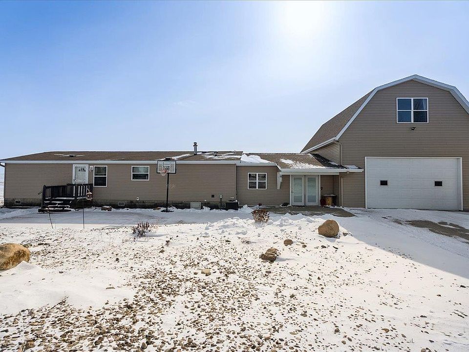 Plenty of room to roam with this beautiful acreage with amazing views of the countryside!! Huge foyer area with plenty of storage and bonus 4th bedroom because all your family and friends will want to visit! Wonderful open layout from the kitchen to the living room and new carpet in living rooms and bedrooms. Out the back door you get wonderful views of the wide-open spaces. As you step into the huge garage you will find plenty of room for the extra toys, UTVs etc. Above the garage you get the huge bonus room for additional storage, office or bedroom. With Rural water and a updated septic system this property is ready to move into and start enjoying the acreage lifestyle!!