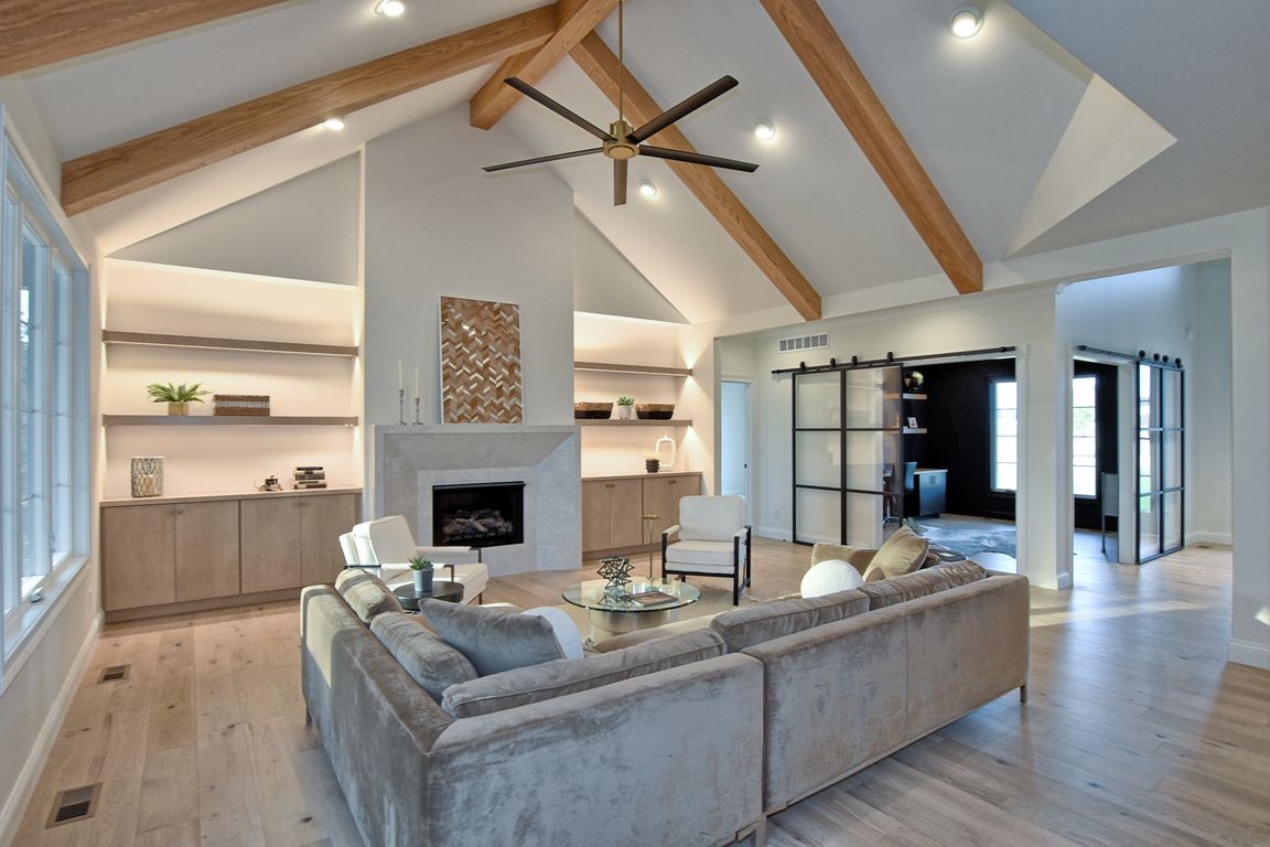 Beautifully landscaped lotQuartz fireplace surroundCovered back porchCustom tile showerLuxurious primary suiteStunning oak beamsOversized walk-in closet