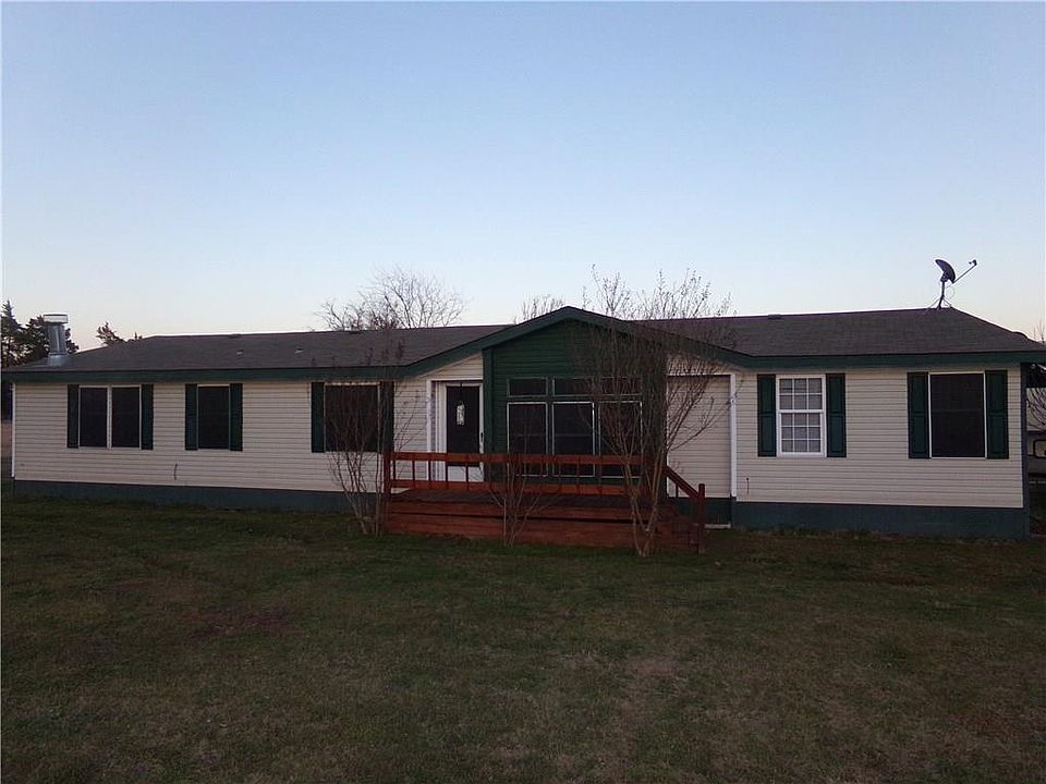 Looking for COUNTRY property with a NICE HOME? Check this one out. Great acreage and room to roam. Nice updated double-wide home, newer AC. dishwasher, roof, Flooring, door. Newer storage building and storm cellar. Barn 35 x 40 with electric. Chickens can remain with property. 2 electric meters. Gunsafe and refrigerator remain with property. 2 living areas, one with fireplace and wet bar. Computer study area. Island in Kitchen. Property is partially fenced. Pond at back of property. Great deck area. Area to build another home if desired. Seller presently has an agricultural exemption on property. Seller is crediting buyer 4000 dollars for barn roof replacement with acceptable offer.