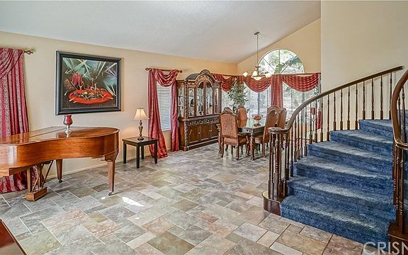 Terrific Shadow Hills property with super private wrap-around lot, with custom grey bottom pool/spa, Gazebo, seating areas! Super spacious layout, 4+3, one bedroom/office downstairs. Upgraded tile flooring throughout. Remodeled kitchen with granite countertops, island, custom back splash with matching cut tile work that matches flooring; Black on black appliances, Dark Wood cabinets. Recessed lighting was added in kitchen and at dry bar area off family room; Downstairs bathroom is remodeled with marble counter tops, custom tile shower. There are two fireplaces, one in family room, one in master bedroom. Oversized Master suite with retreat area. Generous Master bath with oversized tub, separate shower, dual vanities. Ceiling fans throughout, closets upstairs have organizers. Exterior amenities offer super sized lot with extra-wide side yards, no one behind. Lot size extends up the hill. Stone work outside is 3 Rivers stone and stacked stone at pool/spa. Spa has cascading waterfalls, Pool graduates to 9 feet deep at farthest point. Stamped concrete surrounds pool and seating areas, fence was recently painted. Covered patio plus separate gazebo offers serene setting and total privacy too! THIS IS THE LOWEST PRICE POOL HOME IN SAUGUS/COPPER HILL AREA - AMAZING DEAL!
