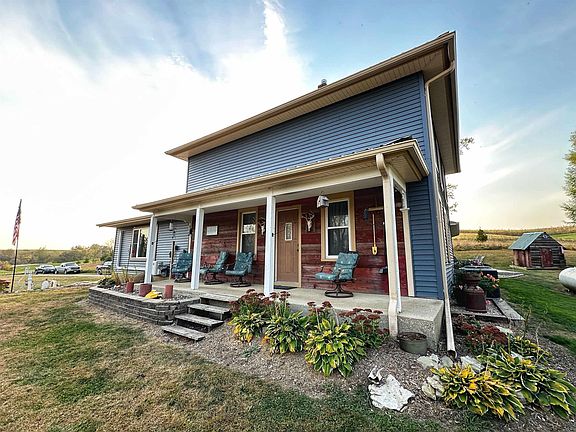 For those seeking tranquility and country living at its finest, this beautiful acreage is perfect for you! Set on 5 acres with rolling hills and mature trees, the property offers complete privacy and wonderful views of Iowa's picturesque landscape. Ideal for nature lovers and/or hobby farming, this type of acreage is hard to find. Step inside this wonderful home and discover a spacious, bright interior. The remodeled home is ideal for family living and entertaining. The first level features a large kitchen with peninsula ideal for family meals, with a seamless flow to the dining room and family room. In 2022, the current owners did a BIG remodel which included the large family room addition with vaulted ceilings and ample windows to invite an abundance of natural light, enhancing the warm and inviting atmosphere. Also included in the remodel was new flooring throughout, wood stove, new exterior siding, central air, and much more. The first-floor master bedroom comes equipped with tons of closet space! The second floor consists of two large, comfortable bedrooms also with plenty of storage. Step outside the home to the covered porch or to the backyard patio ready for a barbeque! The expansive yard provides plenty of room for gardening, outdoor activities, or simply relaxing in the peaceful surroundings. The large 30 x 45 permanent shed has been used to raise a few cattle, but could be used for storage of toys and equipment, or many hobbies. The dog shed with fencing, chicken coop, log playhouse, and play set are included in sale. Call today to schedule your personal tour of this one-of-a-kind property!