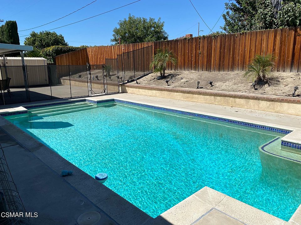 Come see this competitively priced one-story pool home on a quite street in Simi Valley. Large open floor plan with room for the entire family. Fourth bedroom with double doors opens to the entry, perfect for an office. Large covered patio overlooks the sparkling pool comes complete with protective child fencing. The sales price will include the two sheds, patio furniture and all appliances.