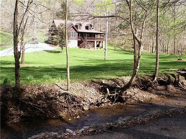 Rural paradise! 15 wooded acres w/babbling brook & custom built cottage w/huge detached garage/shop/rec room. Updated kitchen with latest appliances, deluxe master bath. Full front porch overlooks stream & deck looks to the hills. Immaculate condition!