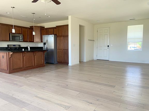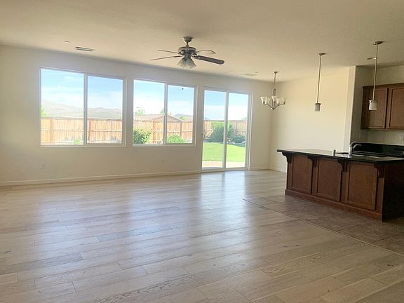 Unobstructed views in spacious backyard of Nevada blue skies and hills. House sits above ALL neighbors in highly sought-after Miramonte development. Away from city lights and higher in elevation, the stars at night are extremely bright. Sit, lay, stargaze on the roomy and private outdoor paver patio area in backyard. Hike in free BLM land right across the street and see views of downtown Reno. Walk to 2 nearby parks. Tiled kitchen has stainless steel appliances and granite countertops with functional island open to tall-ceiling great room living and dining spaces that have wall-to-wall oversized windows allowing plenty of natural light. Kitchen pantry has 2 bottom pull-out soft-close drawers for ease of access. Hardwood floors throughout majority of the house. Wake up to beautiful views of nature in the private master suite with large bay window facing the backyard views. Or pull down the double cellular shades at night to help you sleep better. Master suite also includes large walk-in closet, double vanity sinks, roomy shower, and separate enclosed water closet. 2 additional rooms to accommodate your family, guests, and/or office. 2-car garage has ample overhead storage racks to neatly organize your storage needs, and wide cul-de-sac has plenty of parking spaces. Hallway has coat closet and smart Honeywell Wi-Fi thermostat in hallway helps monitor and lower heating & cooling bills. Multiple grocery stores nearby.