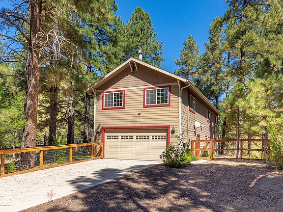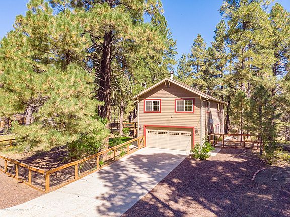 This 2960 sq ft home is move-in ready, enjoy the peace quite just minutes outside of Flagstaff deep in the Ponderosa Pines on your extra- large lot at just under 1 acre. With an updated Chef Kitchen with gas range, double oven, large pantry and granite countertops, this is the chefs delight. Add to this the large living room and then an even larger bonus room, this home has all the space you may need. Overall the home has 4 bedrooms and 3 baths, the main level has a Guest-in-Law suite and office, the master is upstairs with its large bath and soaking tub. Corners are marked for your convenience, ask you agent for a copy of the draft plat map.
