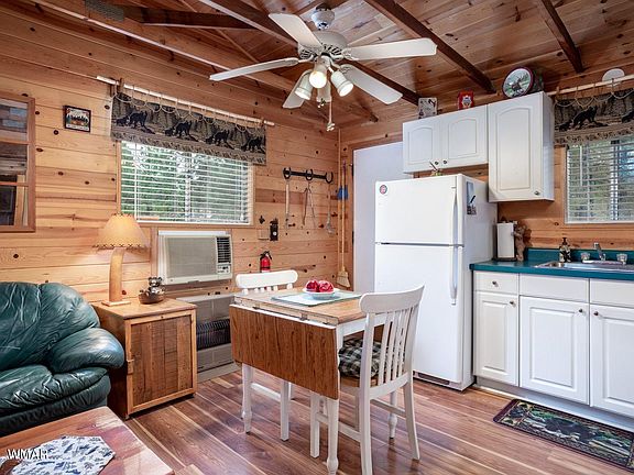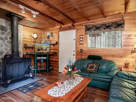 Charming Cabin In The Pines. This cute cabin has 2 bedrooms, 1 bath, cozy T&G living room with wood burning stove, covered front deck to enjoy the summer breezes and tall pines, back deck, storage shed and privacy fenced back yard. Being sold fully furnished- start enjoying mountain living.