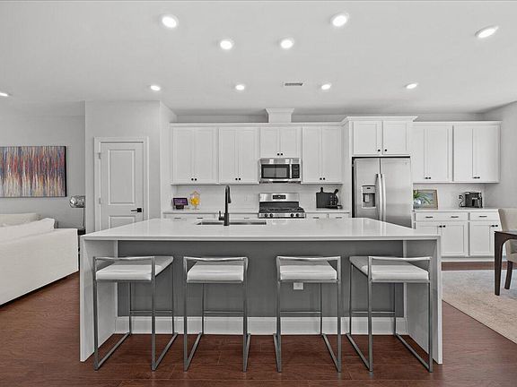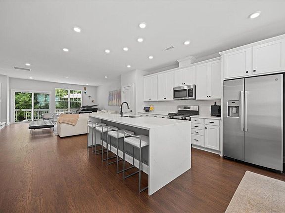 Set yourself apart from the rest in this beautifully updated townhome! Sellers upgraded this kitchen to make it a modern, impressive cooking & entertaining area! Gorgeous ''waterfall'' edge white quartz countertops on the island and this pretty feature is also carried up the backsplash. Owner added more cabinets and created additional storage in the kitchen area. SS appliances throughout. You enter on the main floor with a nice size bedroom/den and full bathroom. The 2nd floor has an open concept floor plan: large kitchen, dining and family room. The family room has an updated ''modern fireplace''. This room has beautiful views of the wooded, private backyard! Enjoy entertaining on the deck with family & friends with a view of one of the best lots in the neighborhood. Upstairs you will find 2 additional secondary bedrooms and a full bathroom. The owner's suite is large and has a generous size walk in closet and ensuite bathroom with a tiled walk-in shower and double vanity sinks. Beautiful community that offers an optional pool membership as well. This location is close to so much shopping, restaurants and great interstate access. Be anywhere in a matter of minutes. Enjoy a ''lock & leave'' lifestyle in sought after Apex. Experience the ''Peak of Good Living''!
