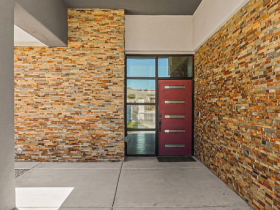 Modern elegance meets comfort in this stunning home featuring a sparkling pool and spa, outdoor fireplace, and breathtaking mountain views. Soaring ceilings and oversized windows flood the open-concept living area with natural light. The sleek kitchen boasts granite countertops, stainless steel appliances, and a spacious island perfect for entertaining. A loft area overlooks the great room, offering flexible space for an office, gym, or second living area. Contemporary floating stairs with glass accents add architectural flair. Enjoy the professionally landscaped backyard with low-maintenance turf, a covered patio, and serene desert charm. Whether relaxing poolside or cozying up by the outdoor fireplace, this home offers the perfect blend of luxury and lifestyle. Located in a desirable Sonoma Ranch E. neighborhood close to shopping, dining, and outdoor recreation. A rare opportunity to own a truly unique and stylish home in the heart of the Southwest!