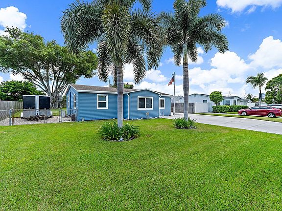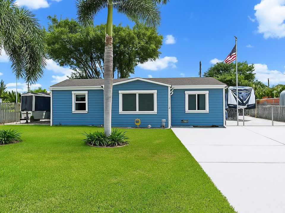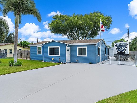 Charming 3 bedroom, 1 bathroom home, perfectly situated on over a quarter-acre with no HOA! Thoughtfully updated for peace of mind, this residence offers a comfortable split bedroom floor plan and modern upgrades throughout. Step into the updated kitchen featuring quartz countertops, 36-inch wood cabinetry, stainless steel appliances, and subway tile backsplash. The home is completed with impact windows and doors, a 2015 roof, and a 2022 A/C system. Enjoy outdoor living on the screened back patio including hot tub, overlooking a beautifully landscaped and fenced backyard supported by a 6 zone sprinkler system to keep the grounds lush and vibrant. The oversized concrete driveway extends to side of home providing ample parking with extended space for an RV or boat, plus 50 & 30 amp hookups. The exterior of the home is finished with durable Hardie plank siding- adding extra protection and charm. Tucked away within the heart of Palm Beach County. Close to fine dining, shopping, and South Florida beaches, truly a rare find with no HOA and plenty of room to grow!
