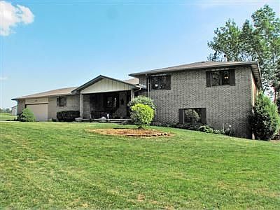 This fabulous all brick home on fully fenced 10 acre m/l setting features huge rooms, walk-out basement, 5 bedrooms, 4 baths, a total of 4-car garages, shop, 4-stall horse shed and stocked pond within 2 miles of Springfield. Peaceful and quiet setting with fruit trees and garden setting. Walking trail to Ritter Springs Park across from home!