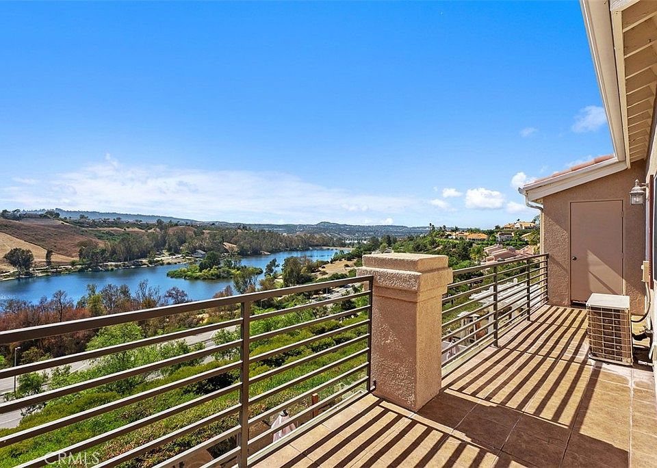 PANORAMIC LAKE AND CITY LIGHT VIEWS. You'll enjoy coming home to this open floorplan, upgraded two story townhome. Kitchen has just been remodeled to include White Kitchen cabinets topped with Quartz Counters with full backsplash featuring stainless appliances, undercabinet lighting and warm wood laminate flooring. The living and dining rooms feature tall two story ceilings. The living room has a gas/wood burning fireplace faced with tumbled stone. The dining room has large new Vinyl dual glazed patio doors leading out onto the patio with forever views. There are 2 bedrooms located on the first level, Enjoy the views from the primary bedroom with large patio door, the en-suite bathroom has dual sinks, large walk in closet with built-ins and a large shower. 2nd level has the loft/3rd bedroom option with private bath and closet. This is perfect for a 3rd bedroom or home office space. Most windows have upgraded wood shutters. Two single car garages. This Costa Brava community is in the Rancho Niguel area of Laguna Niguel and close proximity to Laguna Niguel Lake & Regional Park, Wood Canyon Park. Plenty hiking, biking, walking trails and scenic areas for relaxing. Watch Laguna Niguel's 4th of July celebrations right from your patio. Rancho Niguel also offers its residents membership to "The Club at Rancho Niguel" which has a large gym, pools, tennis basketball and pickleball courts. playground, tot lot, and clubhouse for events. Award winning schools, great dining and shopping opportunities are close by. This is a great place to call home.