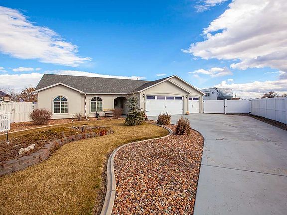 Stunning home on beautiful corner lot (almost 1/2 acre), with gorgeous updates and amazing views of the Grand Mesa off the back patio! This home feels warm and homey and no detail has been overlooked! Huge living room w/ beautiful laminate floors. Master suite w/ nice master bath and spacious walk-in closet. 2nd and 3rd bedroom have walk-in closets! Meticulously kept 3-car garage! A generous amount of RV parking with new gates! Updates include: Laminate floors, top-of-the-line appliances, paint, additional 10x42 concrete patio w/ new awnings and fans, storm doors, RV gates & 30-amp, two sheds (10x14 w/electricity, 8x16 w/ solar light), pleated blinds, water softener. This home will not disappoint! Please call to schedule a private showing!
