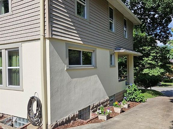 Charming home with side entrance into a center hallway. Living room runs the length of the house with a decorative fireplace, built-in bookcases, and French doors to a large covered front porch. Large dining room with tons of natural light, kitchen with access to small covered back porch and amazing yard with mature planting. Second floor has the main bedroom in front with captive smaller room (listed as "Additional room": use as an office, work-out room, or dressing room) as well as 2 additional spacious bedrooms and an updated bath which retained the charm of yesteryear. Lower level game room with half bath and additionally great workroom and laundry. Hard wood throughout. All windows replaced 2017 with lifetime warranty; gutter helmets 2023. Other updates include: High Efficiency Trinity Boiler, replaced concrete driveway, replaced 2nd floor wood shingles with premium siding, French drain along west side of house.