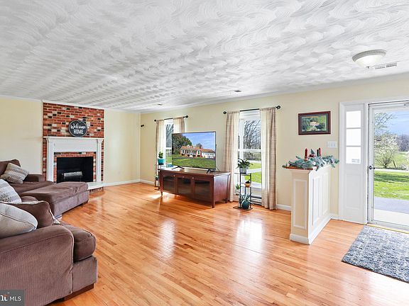 Private setting situated on 1.63 unrestricted acres. With crown molding throughout and a fresh coat of paint, this home offers 3 bedrooms and 2 full baths. Great home with many updates. Remodeled kitchen with an open concept, new windows, new gutters, new water system, newer A/C & heat pump and new carpet. Primary suite with a spacious walk-in closet. Full, partially finished basement includes a Media room with projector and projection screen conveying. The recreation room includes a woodstove along with pool table conveying. Unfinished attic off kitchen. 2 car oversized garage with pull down attic access. Circular paved driveway. Front porch and back patio to enjoy the wildlife and the evening sunsets! Secluded. Great location with easy access to major cities.