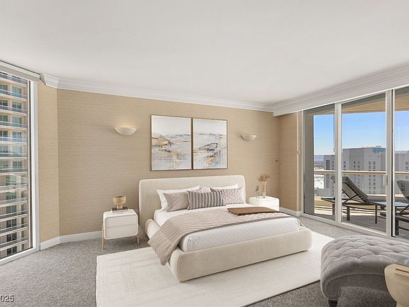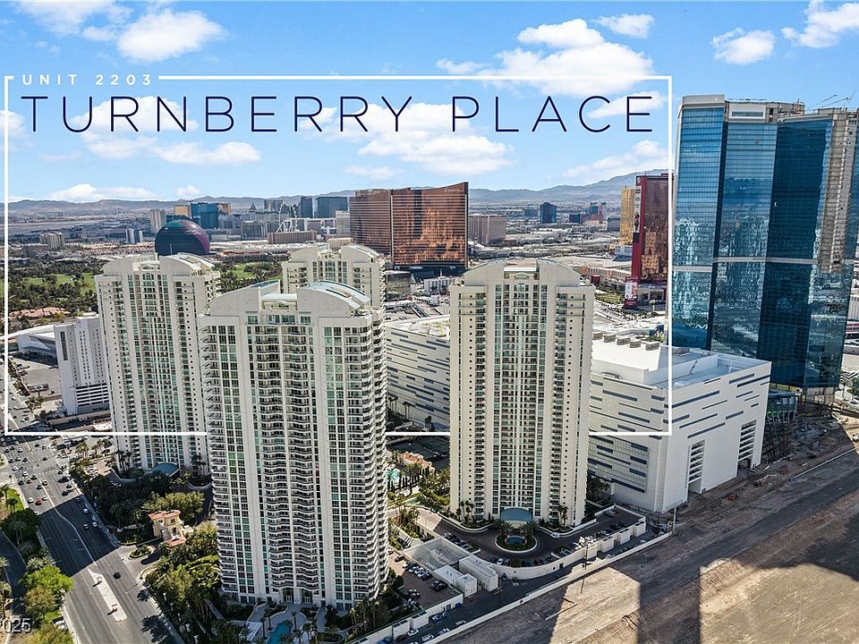 Step into style and sophistication in this newly renovated, 2,195 sq. ft. stunner on the 22nd floor of Turnberry Place! Soaring above the city, this sleek, contemporary residence boasts oversized balconies with jaw-dropping views of the Las Vegas Strip, surrounding mountains, downtown skyline, and a sparkling resort-style pool. Inside, natural light floods the expansive layout, featuring two lavish primary suites, a chic powder room, a spacious laundry room, and fully equipped kitchen. The open-concept living and dining areas are designed for entertaining with elegance and ease. Live the high life with Turnberry's unmatched amenities—including concierge service, limo, valet, guest suites, gym, and more. Steps away, indulge at the exclusive Stirling Club, offering a full-service spa, salon, indoor/outdoor pools, tennis and pickleball courts, steam room, private lounges, Starbucks café, gourmet dining, wine cellar, and more. One assigned parking space and private storage for convenience.