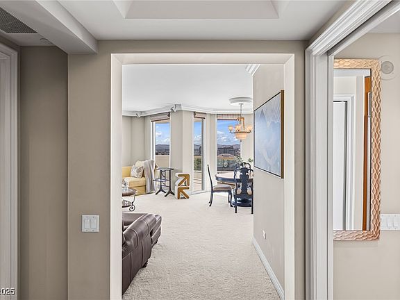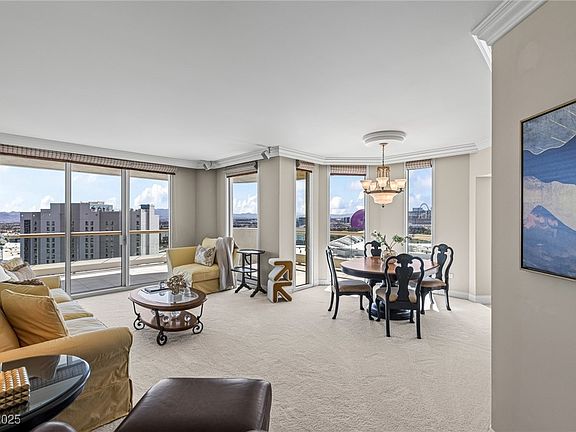 Rare opportunity! Flawless views of the Strip. 1,556 ft.² condo on the 22nd floor featuring a massive 379 ft.² wrap-around balcony in the building's Prime corner. Floor-to-ceiling windows enhance the expansive feel & the second en-suite bedroom also has great views. The amenities includes; gym, pool, BBQ area, pet park & guest quarters (suite available for a fee). The HOA fee covers; water, gas, valet, concierge, limo service, security, management & more. The Stirling Club, located on the property grounds is a private membership club offering full spa services, salon, barber shop, massage, nails, facials & other treatments. The club features a well-appointed gym, Pilates & yoga classes, tennis/pickle ball courts, sauna, indoor/outdoor pools, gourmet restaurant, bars, cigar lounge, Starbucks, cellar, tasting room & large spaces avail. 4 private functions. Great Buy at Turnberry Place!
