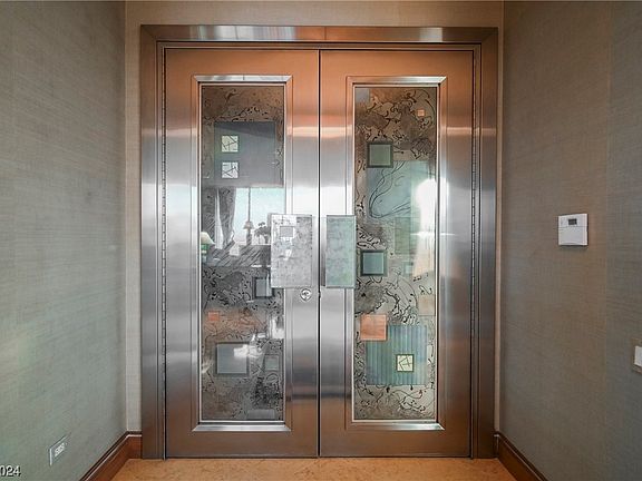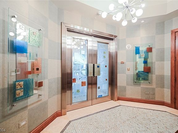 Experience an Elevated Lifestyle in this Remarkable 4-Bedroom Penthouse with private foyer entry! Be captivated by it's Rare 11' floor-to-ceiling glass windows, showcasing Epic World-Famous Las Vegas Strip Views. Immerse yourself in exquisite custom features, including glass art doors, high-end appliances, designer built-in closets, entertainment center and custom wet bar. Imported Italian stone accents, automated shades, and a Jetted soak tub add to the allure. This open floor plan separates entertainment spaces from bedrooms. Marvel at the breathtaking Sunrise and Sunset Mountain views from your wrap-around glass balcony. Indulge yourself in the spectacular amenities of the private Stirling Club, which boasts gourmet dining, spa treatments, pickleball, tennis courts, and more. This residence is the definition of luxury. Your dream penthouse awaits!