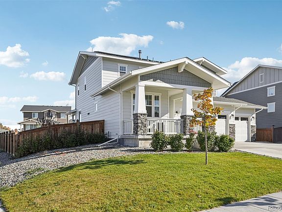 Welcome to this stylish 4-bedroom, 3-bath home offering modern living, mountain views, and a spacious layout perfect for today’s household. Built in 2022, it features luxury plank flooring, a sleek kitchen with stainless appliances, quartz counters, and a large island that connects seamlessly to the open dining and living areas ideal for everyday comfort and entertaining. A main-level bedroom and powder room provide flexibility for guests or a home office. Upstairs, the primary suite delivers serene mountain vistas, a large vanity, and a walk-in closet. Two additional bedrooms, a full bath, and convenient upstairs laundry completes the well-designed second floor. Outside, enjoy Colorado living with a big backyard, low-maintenance landscaping, raised boxes with dedicated drip lines for easy gardening and plenty of room to create your outdoor vision. The oversized 3-car garage offers excellent storage and workspace for hobbies and toys. Located near parks, open space, shopping, and minutes to the airport and Denver, this home pairs convenience with the space and style you’ve been waiting for. Home qualifies for a lending incentive from Sunflower Bank of up to $7000, eligible on Investment Properties, Second Homes and Primary Residences within Conventional, FHA, and VA loans. See attached supplement for further details and contact info. Solar Power Agreement/Loan is currently $127/month with Mosaic servicing and will be transferred to buyer with all the solar equipment at closing. Please contact listing agent with any questions.