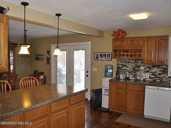 Nicely secluded 5 bedroom 2 bath home on 5 acres only minutes from Detroit Lakes, Updated Kitchen with tile back splash. Open concept with eat-up nibbler bar. Huge Master Bedroom and Large Hollywood Master Bath, Cozy lower level Family room and Recreation area with built in Bar. Drink your coffee on the Large East Facing Deck, 24x34 Garage, Room for your Garden Tree Stand and everything Country.