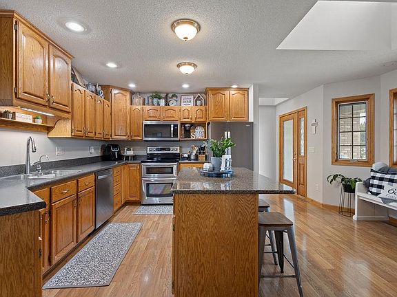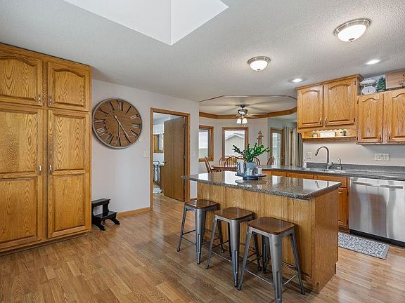 New roof on house and 3 outbuildings have been completed! Property is not in a floodplain and conveniently located within Platte Center city limits, this exceptional 1.65-acre property offers city water and sewer, a propane-heated fully insulated 24' × 28' detached garage/workshop (with tank included) + an additional shop—ideal for hobbies, storage, or more. Step inside to find three bedrooms on the main level, including a primary en suite and main-floor laundry, along with a living room featuring a propane fireplace. The kitchen appliances are included, and both the house and detached garage have brand-new doors and openers. The basement is fully finished with a family room, bathroom, and three versatile bonus rooms, with additional storage. Behind the attached garage, there’s extra covered space perfect for overflow gear, a secondary fridge, or seasonal items. The property also has an underground sprinkler system that worked the last time it was run a few years ago. New HVAC installed in July 2025. Please note the small white shed in the backyard does not stay.