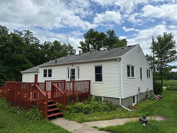 Tucked just down the road from Unverferth Manufacturing and the New Hartford Racing Dirt-bike Track, this peaceful acreage offers a fantastic opportunity for country living with great outbuildings and room to grow. The home features 2 bedrooms on the main floor and a third in the basement, along with a full bathroom on the main floor. The house has had some updates over the years, including a solid roof and several newer windows. Step out onto the back deck and enjoy the backyard, a retreat filled with mature hardwood trees and a variety of plantings ready for a little cleanup to truly shine. The property includes a one-stall attached garage, a 864 sq ft detached garage/workshop that was previously heated, and a large 40’ x 60’ steel building with two overhead doors and a walk-in entrance, perfect for storage, hobbies, or business use. Sitting on a gravel road, the home enjoys a peaceful setting surrounded by nature, including a producing apple tree out front. With just a little maintenance and sweat equity, this acreage has all the makings of a long-term homestead, hobby farm, or rural retreat. Don't miss your chance to own a slice of the countryside with endless potential!