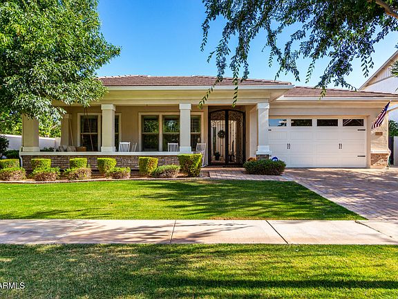 Charming 3-bed plus den, 2.5-bath home on a desirable corner lot, featuring a 3-car garage, RV gate, well-manicured landscaping, & a welcoming front porch. Inside you'll find a spacious great room w/a fireplace, a formal dining room, wood flooring, plantation shutters, neutral paint, all light, bright and airy! The chefs kitchen showcases white cabinetry, tile backsplash, gas stove, large pantry, & a huge island as well as a breakfast room. Flexible den is ideal for an office area! The primary bedroom offers a bay window, separate ensuite w/dual sinks & super shower!. The private backyard has a large covered patio w/lots of pavers & a ramada, lush grass, & mature trees.