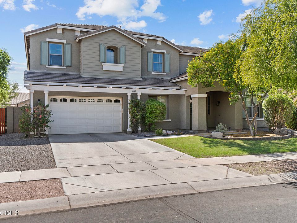 Welcome to this stunning home in Shamrock Estates, offering the lifestyle you've been searching for! Featuring a lush, manicured front yard, RV gate, 3-car tandem garage with built-ins, and exceptional curb appeal. Inside, the expansive 4,919 sq. ft. floor plan showcases soaring vaulted ceilings, a cozy fireplace in the family room, oversized loft, plantation shutters, and rich wood flooring. The gourmet kitchen is equipped with granite countertops, gas cooktop, and a spacious walk-in pantry. The main-level primary suite includes a spa-inspired bath and an enormous walk-in closet. A large bonus room provides endless options for work, play, or relaxation. Step outside to your private backyard oasis, complete with a full-length covered patio, custom diving pool with Baja shelf, grassy play area, and an above-ground spa - perfect for entertaining or unwinding.