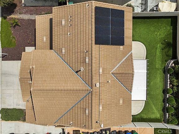 Stop the car! VA ASSUMABLE LOAN! Call for more details......This property is ready for move in. Private front porch, formal entry with lower level office. Full lower level guest bath and guest bedroom. Relax in the open family room with family dining area. Kitchen is the chefs delight. Granite counters, white cabinets, center island, gas counter top, Gas oven, microwave, dishwasher, walk in pantry and plenty of cabinet space. Upper level opens to spacious loft, main bedroom and main bath, walk in shower, large soaking tub, double sink vanity with a walk in closet. There are 3 additional bedrooms, guest bath and laundry room with built in cabinets. Upgrades throughout, tile, upgraded carpet, paint, window coverings and lighting features. Rear yard has patio with custom built patio cover, artificial turf, planters, side hard scaping and vinyl fencing. Seller leased solar, 3 car garage, close to 215 Freeway. shopping and schools.