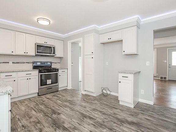 A magnificent renovation awaits its new owner. An absolute gem, this bungalow with a traditional layoutmeets modern style and fantastic finishes that are due to delight all.Updates include new air conditioning, roof, gutters, insulated vinyl windows, exterior doors, leading tothe updated enclosed rear porch with remodeled kitchen with high-grade granite with crown molding,stainless steel appliances, luxury engineered vinyl flooring, refinished hardwood floors at the living roomand hallway, new interior doors, brand new carpeting, remodeled the main bathroom, second-floor ownersbedroom, with a designerâs touch that was added to the private glamour bathroom with vaulted beamceiling, a walk-in closet, custom tile work, quartz double sinks, finished basement with recreation room,remodeled half bathroom, laundry area. The home also features freshly painted interior and exterior,updated electrical panel, interior/exterior lighting, 2 car detached garage with new overhead doorand opener, new concrete driveway, service walk, and sewers.