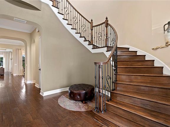 Luxury living is yours in the gated Toscana community of Estancia. With a dramatic two-story foyer and solid hardwood floors throughout, this is an excellent entertaining home located on one of the largest properties in the community and on a cul-de-sac. Gourmet kitchen, double ovens, and a large granite island open to the family room with gas fireplace. The beautiful screened lanai with outdoor kitchen looks out at the expansive fenced-in backyard and conservation area. It also boasts two guest bedrooms downstairs and an office with a gorgeous curved stairway leading to the sumptuous master suite upstairs. This massive bedroom with separate dressing area and dual walk-in closets adjoins a luxury bath with over-sized shower and garden tub. Three more bedrooms upstairs and a massive game room will fulfill your family's dreams. Wired for whole house entertainment system, it allows for the perfect resort lifestyle. This community features a 7,000 sq ft elegantly appointed amenity center including resort-style pools, fitness center, clay tennis courts, basketball courts, playground, park with nature trails and more. Monthly social events allow for a real community feel and socializing. Estancia was named "The Best Master Planned Community" for four consecutive years by the Tampa Bay Builder's Association. Located just north of Wiregrass Mall and The Florida Hospital and near two major interstates of I-75 and I-275. This is not a new home, this is a new lifestyle.