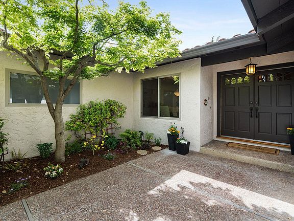 BEAUTIFULLY MAINTAINED ON ¼+ ACRE LOT | Infused with casual elegance, this single-level residence on a sprawling lot offers indoor-outdoor living blocks away from Downtown Los Altos. Light-filled spaces flow into a backyard paradise complete with rose garden, citrus trees, and freeform pool and spa. A romantic entry courtyard opens to interiors featuring a climate-controlled wine closet, two fireplaces, wide-plank oak floors, and Andersen® windows. Vaulted ceilings with exposed beams hover above the large living room, while separate dining and family rooms lend plenty of gathering space. Glamorous quartz countertops line the sky-lit kitchen, which includes a walk-in pantry and high-end appliances. The large primary suite provides dual vanities, a dual shower, and custom walk-in closet. Includes a spacious mudroom, attached three-car garage, and oversized parking pad. Near fine dining, shopping, and top Los Altos schools (buyer to verify).