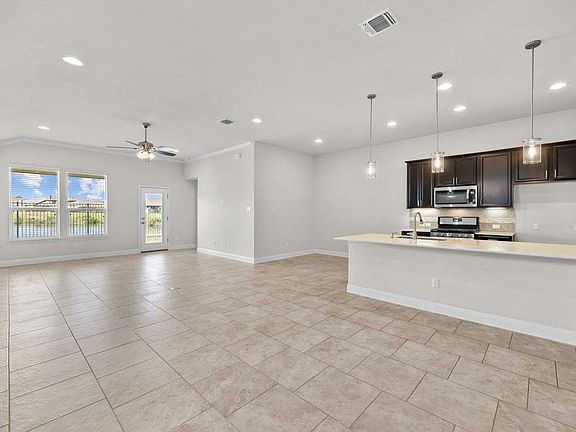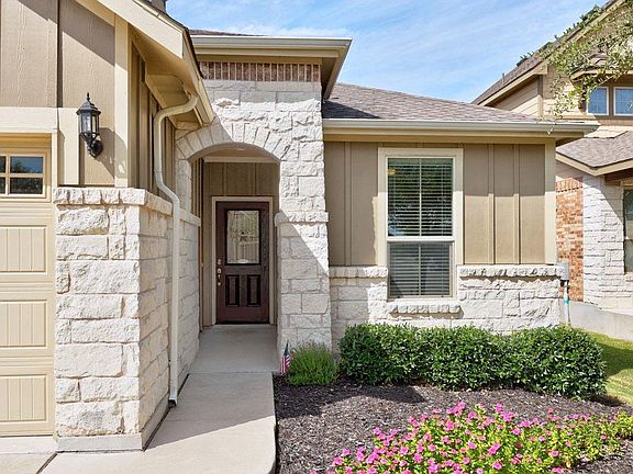 This beautifully maintained single-story home sits on a premium lot with peaceful pond and fountain views, offering a serene backdrop from your covered patio perfect for gatherings and quiet mornings alike. Inside, enjoy a light, bright, and open-concept layout with 3 bedrooms plus a cozy office featuring stunning wood flooring. The kitchen boasts quartz countertops, a large center island, stainless steel appliances, and dark cabinetry that opens to the spacious living and dining areas. Brand new carpet (2025) has been installed in all bedrooms for a fresh, move-in-ready feel. The spacious primary suite includes a luxurious bath with dual vanities, a soaking tub, separate shower, and a large walk-in closet. Additional highlights include four sides masonry, a longer-than-average driveway for extra parking, and updated mechanicals: a new water heater and a recently replaced garbage disposal. Located in an award-winning master-planned, highly desirable Santa Rita Ranch community with resort-style pools, a fitness center, walking trails, and top-rated Liberty Hill ISD schools. Just minutes from restaurants, retail, and major roads, this home offers both comfort and convenience. Immaculately cared for and turnkey ready. Don’t miss your chance to own this rare waterfront-view gem!