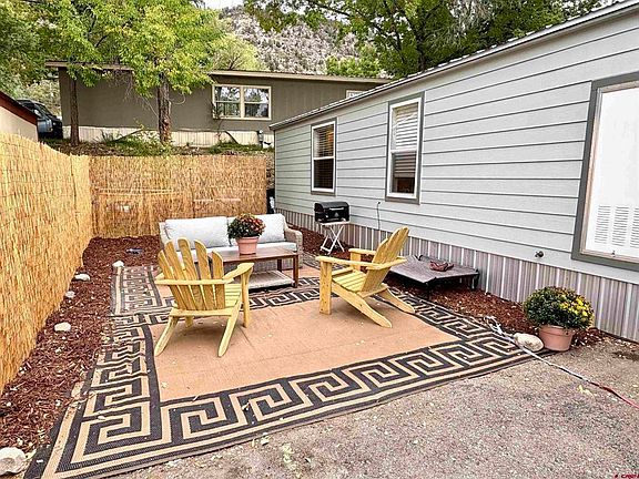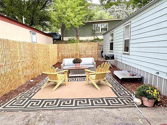 Live Affordably in Durango! Enjoy a prime location just five minutes from downtown, right on the scenic Animas River Trail, in this fully renovated 2-bedroom, 2-bath home located in the resident-owned Animas View Co-op. Recent Upgrades Include: Exterior: New Galvalume metal roof, vinyl double-pane windows, exterior doors, Hardi Plank cement board siding, Sherwin-Williams premium paint, sheathing, house wrap, metal skirting, and central A/C. Interior: High-end GE appliances—gas range, dishwasher, counter-depth refrigerator, over-the-range microwave—and a Maytag front-loading washer and dryer (all included!). Beautiful new all-wood cabinets and vanities with soft-close drawers, granite countertops, updated plumbing and lighting fixtures, solid wood trim, textured walls, LVP flooring, and custom tile in both bathrooms and kitchen backsplash. With its south-facing exposure, this home is light, bright, and airy—a must-see opportunity for comfortable and affordable living in Durango! Lot rent only $800 per month. Call today to view this lovely home.