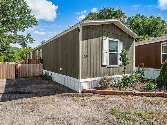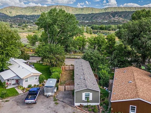 Nice 2017 mobile home 1,216 sf, living room open to the kitchen, master on one side and 2 guest bedrooms and 1 bath on the other, built in wood shelves, fully fenced side yard. Very nice mobile home park along the river side, gate out the back to the railroad tracks and river trail and just a short walk to Oxbow park for river access. Excellent location. Seller is offering a $2,000 concession to offset the cost to repair/replace carpet in the hallway and linoleum in the master bathroom. Buyer must be approved by Animas View MHP COOP within 10 days prior to closing. Animas View MHP COOP has a 30 day waiting period to offer to Buyers in the low income bracket first.