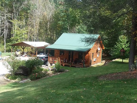 You really don't want to miss this tastefully manicured and level 3.4 acre creekfront property overlooking the Great Smokey Mountains, less than 10 minutes to Waynesville shopping, 2 minutes to the Blue Ridge Parkway! Custom wood and rockwork throughout the entire property. New roof in May 2018. HVAC, floors, hot water heater and master bath fully upgraded in 2016. Comes with a 750+sqft fully-equipped Guest Cabin with loft and lovely front porch, site built in 2010! Huge two car custom detached garage with an even bigger carport attached, circle driveway with plenty of parking all in a quiet, wooded setting. The road is paved and easily accessible. Too many upgrades to list! Seller Motivated!