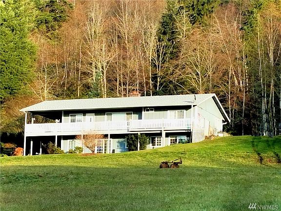 Versatile layout featuring dual living quarters on both floors, including a full kitchen, and outside entrance on each level. Perfect for rental potential, artist studio or guest area. Beautiful views can be enjoyed on spacious wrap around deck, and not to mention the additional space for storage with a 50'x27' shop/garage (with plumbing and power) 3 garage bay doors with space for RV, along with bonus 9'x27' car port.Nearly 10 acres (3 parcels) of opportunity awaits you with this property.