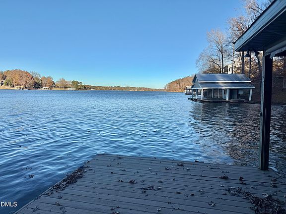 Extraordinary long range lake views surround this house at Hyco Lake. 2 bedrooms.....2 guest rooms....and 3 1/2 bathrooms!! Majority of house renovated in 2009! All furniture conveys (except a few items)!! Screened in porch just beckons you to take in THAT VIEW and just relax. 14 ft of water at the double slip boathouse. Paved golf cart path to the boathouse (golf cart conveys).Gorgeous hardwood floors. Master bedroom is private from the rest of the house, and has its own bathroom, and it's own exit outside. Main level bedroom has it's own bathroom, and it's own private outside deck! The two guest rooms, share a bathroom, and have their own exit outside also! No restrictions!