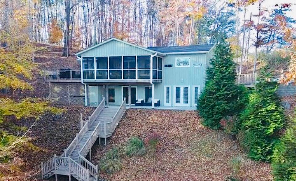 Private outside deckLong range lake viewsHardwood floorsScreened in porch