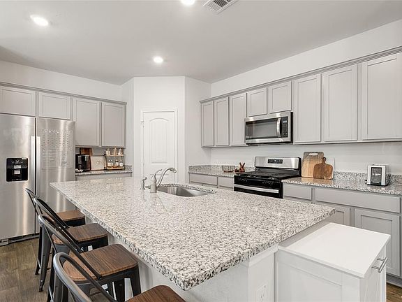 Short sale- Subject to Lender Approval! Welcome to 288 Caddo Bend—where modern comfort meets everyday convenience in this spacious 4-bedroom, 3-bathroom home built in 2023! Located just minutes from Kyle’s growing shopping and dining scene and with easy access to I-35, this home blends peaceful living with a prime location. Step inside to find a light-filled, open floor plan featuring a stylish kitchen with granite counters, a breakfast bar, and a dedicated dining space—perfect for entertaining or everyday living. The downstairs features a unique layout, with the main bedroom and a guest suite located on the first floor, along with a full laundry room for added convenience. The primary suite is a true retreat, featuring privacy at the back of the home and boasting two walk-in closets, a garden tub, and a separate shower. Upstairs, you'll find a second living area—ideal for a game room, media space, or home office—and two more generously sized bedrooms, each with its own walk-in closet. Enjoy relaxing mornings on the covered front porch or unwind in the large backyard under the covered patio. The community park and walking trail add even more to love about life here. Don't miss your chance to own this like-new home with all the space you’ve been looking for—schedule your showing today!