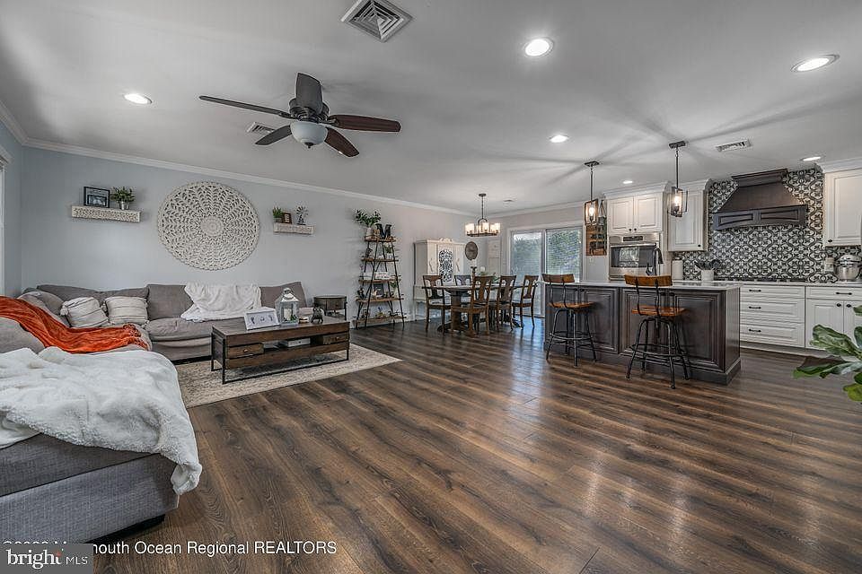 Pride in ownership! Charming and Updated ranch located in the Desirable Ocean Acres on an oversized lot. Bright and Open concept living that offers a Stylish eat in Kitchen with soft closing white shaker cabinets, espresso color center island, stainless steel appliance set, quartz counter tops, and tiled backsplash. 3 Spacious bedrooms and 1 full bath with custom tile work. Additional Features include, durable vinyl plank flooring, fireplace, recessed lighting, covered front porch, and 1 car garage. Matured landscaping on an oversized 150' deep lot. Rear fenced in yard offers a brick paver patio, fire pit, and pool. Quick access to LBI, restaurants, shopping, and GSP. Don't wait make your appointment today!