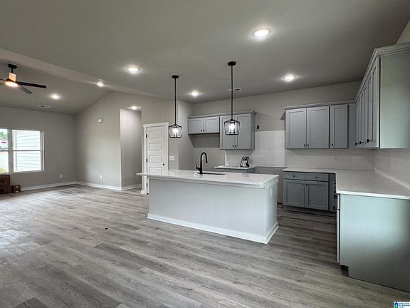 This completed and move-in-ready modern craftsman sits on nearly half an acre in the serene Eastern Shores community at Lake Catoma, minutes from Cullman. The 1,688 sq ft floor plan includes 3 bedrooms, 2.5 baths, and a split layout for primary suite privacy. The kitchen is highlighted by quartz countertops, stainless steel appliances, modern cabinetry, and a large walk-in pantry. The open-concept living area features vaulted ceilings and a sleek electric fireplace. The primary suite offers a huge walk-in closet, while additional bedrooms also include oversized closets for abundant storage. Outside, enjoy an enormous backyard that provides endless opportunities for entertaining, gardening, or relaxation. A front-entry garage adds convenience, while board-and-batten details complete the home’s curb appeal. With no HOA fees and premium craftsmanship throughout, this home offers the perfect combination of comfort, function, and modern design. ASK ABOUT $5K YOUR WAY!!!