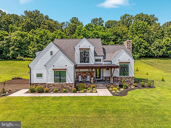 One of a kind! One, if not the most upgraded homes in the area! You must see to appreciate. With $250,000+ in upgrades, this home's timeless design meets modern sophistication in this custom-crafted 4 bedroom, 4.5 bath estate nestled on a serene 2+ acre lot backing to lush woodlands. A true showpiece of elegance and craftsmanship, this one-of-a-kind residence offers an exquisite blend of natural textures and high-end finishes—both inside and out. From the moment you arrive, the home makes a lasting impression with its rich fusion of stone, natural wood accents, and durable HardiPlank siding. The inviting covered front porch welcomes you in, while the rear covered porch offers a peaceful retreat wrapped in scenic views. With architectural detailing and a seamless connection to the landscape, this home offers the perfect balance of charm and refinement. Step through the soaring two-story foyer into a light-filled open layout adorned with engineered hardwood floors, wood-beamed ceilings, and statement finishes. At the heart of the home lies the chef’s dream kitchen, boasting a ZLINE dual-fuel range, commercial-grade vent hood, high-end countertops, a shimmering mosaic tile backsplash, and designer cabinetry built for entertaining. Flowing effortlessly into the spacious family room, this is where form meets function, ideal for gathering around the warmth of refined textures and premium materials. The main level office with its double-entry barn doors offers lots of light and space for the work at home, or flexroom, choices. The main-level primary suite is a private haven featuring a tray ceiling, access to the rear patio, and a custom oversized walk-in closet. The spa-like primary bath pampers with an oversized frameless glass shower, dual vanities, a freestanding soaking tub, and luxurious satin brass and stainless steel finishes that exude quiet luxury. Upstairs, you’ll find three generous bedrooms, each with walk-in closets. Two bedrooms share a Jack-and-Jill bath with stylish finishes, while the third serves as a junior suite with soft carpeting and a private en-suite bathroom featuring sleek subway tile and a frameless shower. The expansive 2,200+ sq ft basement is a blank canvas with endless possibilities—currently a vibrant entertainment hub. Highlights include a custom bar with a live-edge wood top, stone backsplash, granite surfaces, ambient lighting, and built-ins for your wine and beverage collection. A full bath, walk-up access, and an oversized storage room/gym space complete the lower level. Located in the picturesque Brookside community, you’ll enjoy the serenity of a rural setting with convenient access to Route 81, the Martinsburg shopping plazas, Poor House Farm Park, Black Draft Distellery and more fun and popular sites! It’s the best of both worlds: tranquility with town proximity. Schedule your private showing of 288 Elegant Drive and experience its rare blend of luxury, privacy, and functionality before it’s gone. This is not just a home, its a lifestyle!