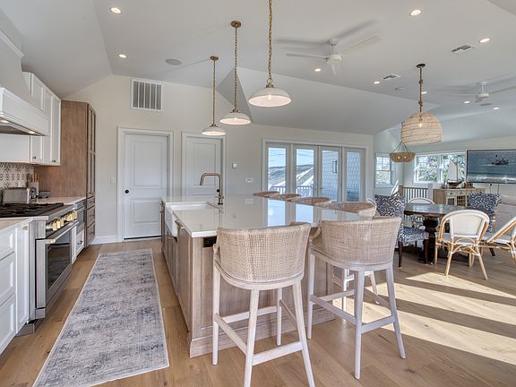 Rental Registration #: 23-896 This is the summer home that makes memories! Newly renovated five plus bedrooms, four and a half bath home set on a quiet 0.5 acre lot, on the 4th hole of Montauk Downs Golf Course. The ground floor has a primary ensuite bedroom, along with two additional bedrooms and a shared bath. A family room and a fully functioning kitchen/bar area open through sliders to stone patio and a large yard. This layout affords guests the privacy of their own space along with access to the amenities of the whole home. The main floor has a large, open kitchen and living room with soaring ceilings inviting in tremendous morning light and afternoon sunsets. A generous deck overlooks the 4th hole, and provides ample space to barbecue or lounge. Additional living space on the main floor includes three additional bedrooms and two baths. Offering beautiful views of the Montauk Downs Golf Course, proximity to beaches and town, this Montauk home is not to be missed!