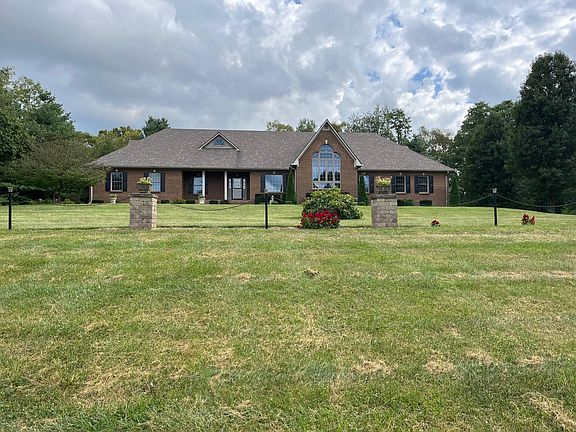 Lovely, updated 3350 sq. ft. ranch home on 5.19 acres, located 2 miles from I-75 and only 10 minutes from Hamburg shopping. Property includes a charming cottage built in 2020, a 2-car attached garage and a detached garage with brand new roof. Home updates include: brand new carpet, new dishwasher, newer roof (2020), newer HVAC (2018), and water heater (2018). Potential to add a second story and 2500 more sq. ft. to the home in the huge attic. Home features a formal dining room, spacious great room, beautiful kitchen with pantry, a primary bedroom suite with walk-in closet, 2 spare bedrooms that share a bathroom, and a room off the garage for a workshop or home gym. There are 4 well-placed fireplaces in the home. Enjoy outdoor living and peaceful privacy on your covered front or back porches. Plenty of room to put in a pool or have a large garden. Property backs to a horse farm, and is across the street from Boone's Station, where Daniel Boone lived. Come see this Uniquely Kentucky property today before it's gone!