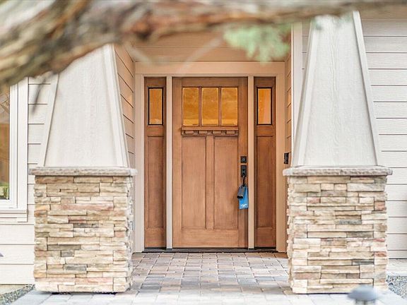 Gorgeous single-level custom home with a SIX CAR garage and beautiful views of Smith Rock in Eagle Crest Resort! This open-concept plan is ideal for hosting family and friends with the large open great room, kitchen with gorgeous slab granite countertops, expansive breakfast bar, gas range, double ovens, walk-in pantry, and spacious dining room. Take the party to the deck and enjoy the beautiful views and incredible Central Oregon starlit sky. Primary suite with slab granite counters, walk-in closet, dual sink vanity, jacuzzi tub, and tiled walk-in shower. Two guest rooms with walk-in closets, full bath, and laundry room with utility sink and built-in cabinets for storage. This home has abundant storage options including a large double-door closet with shelves, walk-in pantry in the kitchen, coat closet in the entryway, walk-in closets in all bedrooms, storage cabinets in the laundry room, and a six car garage! Enjoy all Eagle Crest amenities.