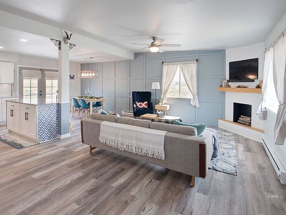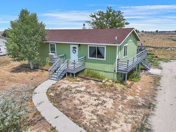 Your Pinterest board called and said this is the home you've been dreaming of! This immaculate residence features an open layout with a neutral grey color scheme, newly installed flooring, and fresh paint both inside and out. The modern kitchen boasts brand new sleek white cabinetry with black handles, granite countertops, and stainless steel appliances. It also includes a pantry with a hidden coffee station for your convenience. All bedrooms are outfitted with new LVT flooring or carpet, and the bathrooms are elegantly designed with custom tile showers. The downstairs area includes a spacious Family Room that opens to the backyard, as well as an additional versatile room that can serve as an office, den, or TV room. The master suite includes a cozy sitting area and a generous walk-in closet. Set on a 2-acre fully fenced lot, this property offers a wood deck with stunning views of the Rubies and comes with chicken coops. A large detached two-car garage provides ample space for vehicles and storage. This home seamlessly combines modern comfort with serene outdoor living. Make it yours today!