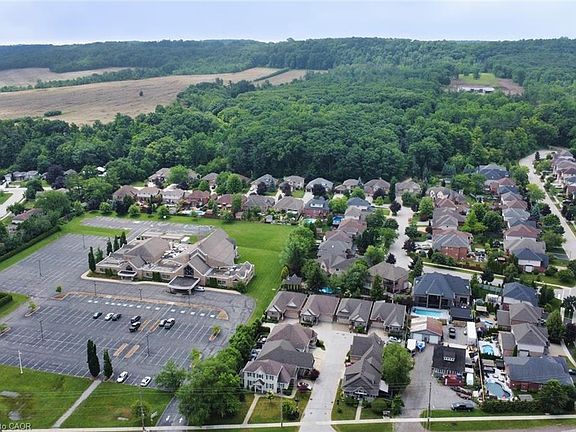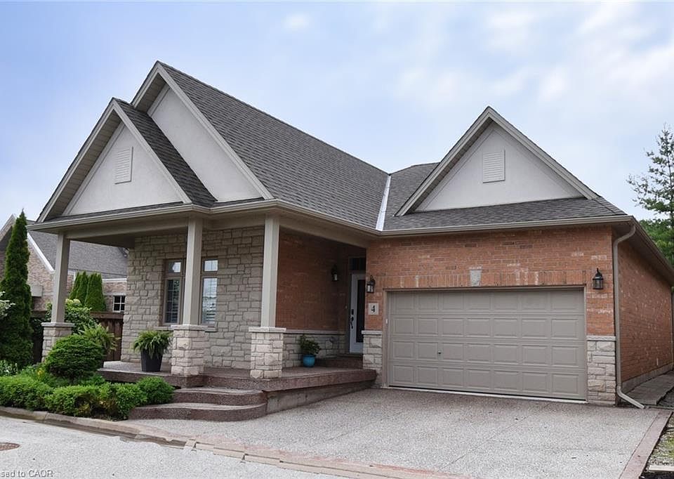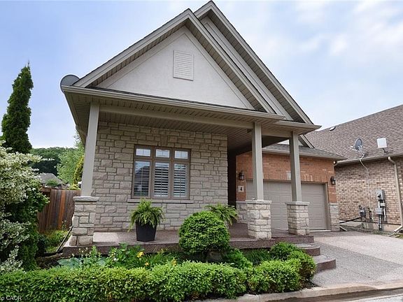 Rarely offered bungalow in a private enclave nestled in charming Grimsby. This detached all brick & stone bungalow offers 2 + 1 Bedrms and 3 bathrms. The main floor has a modern open concept design with 9 ft ceilings, hardwood floors, pot lights throughout and California shutters. Huge dream kitchen with plenty of cabinets and granite counters. The primary retreat offers a spacious walk-in closet, 5 pce ensuite bathroom with a jetted soaker tub. Fully finished basement has 3 pce bath, bedroom, large rec room, and a large utility room with plenty of storage space. Double driveway and front porch with exposed aggregate, gorgeous professionally landscaped maintenance free yard with private patio, perfect for entertaining. Located in a private exclusive 9 home enclave, close to award winning wineries, local markets, parks, schools, easy highway access and scenic small towns along the Niagara escarpment. A MUST SEE. Don't miss out on this rare find!!