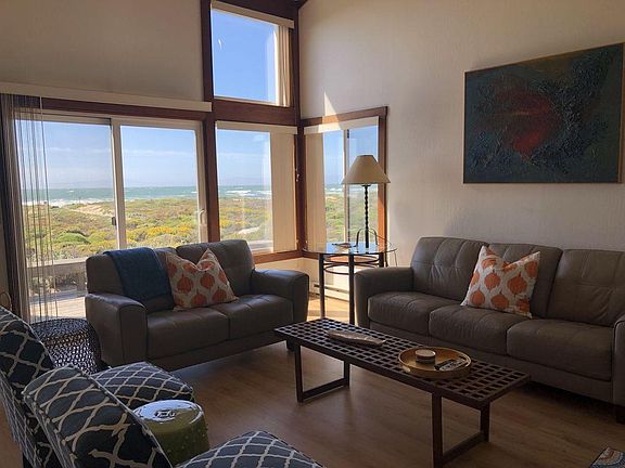Step into luxury in your quintessential beachfront home at Monterey Dunes Colony in South Moss Landing. You will love your private enclave on a one-mile stretch of beach. This home has three spacious bedrooms including a master suite and two bathrooms - all on the ground floor. Feel your heart rate slow to the ocean waves and sunset views in complete privacy. Near golfing, restaurants, but just far enough from the chaos of busy lives for complete solitude. High ceilings, open concept, and ready for you to retreat from your busy career only 1-2 hours away! The community features a large swimming pool, sauna, Jacuzzi, tennis, bocce ball, sand volleyball courts, and basketball courts in a resort environment. Complete privacy with corner home attached by only one wall to neighboring home. It is a single story home with only a few steps to enter. The detached two-car garage is nearby. Gorgeous updated kitchen with quartz counters, shaker cabinets and unstoppable ocean views.