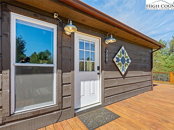 One level living, rustic cottage in the Blue Ridge Mountains. Just minutes to state parks, abundant hiking trails, quaint West Jefferson shopping, restaurants and the nearby Blue Ridge Parkway. Only a few steps to enter this updated, welcoming mountain retreat. Tongue and groove cathedral ceiling brings a coziness to the large great room, easy care flooring, stunning kitchen! has beautiful cabinets, counters and subway tile backsplash. The spacious primary suite has luxury size bath, second bedroom is ample size. This cottage is truly lived on one level, the yard is almost flat! Ideal for easy access and creating spaces for pets and the family. Ashe Lake has community Lake access. Comes furnished with exceptions, would be perfect for year round living or a short term rental.